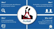 Das Projekt Produktionsbezogene Nachhaltigkeitskompetenz (ProNaK) hat das Ziel, mitarbeiterbasierte Potenziale zur Energie- und Treibhausgaseinsparung in der produzierenden Industrie zu erschließen, um CO2-Emissionen zu reduzieren.