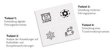 Ziel ist es, Führungsinstrumente, Methoden und Werkzeuge zur Unterstützung der Führungsorganisation und der Interaktion zwischen den Beteiligten im Unternehmen zu entwickeln und diese an die aktuellen Trends der Digitalisierung anzupassen.